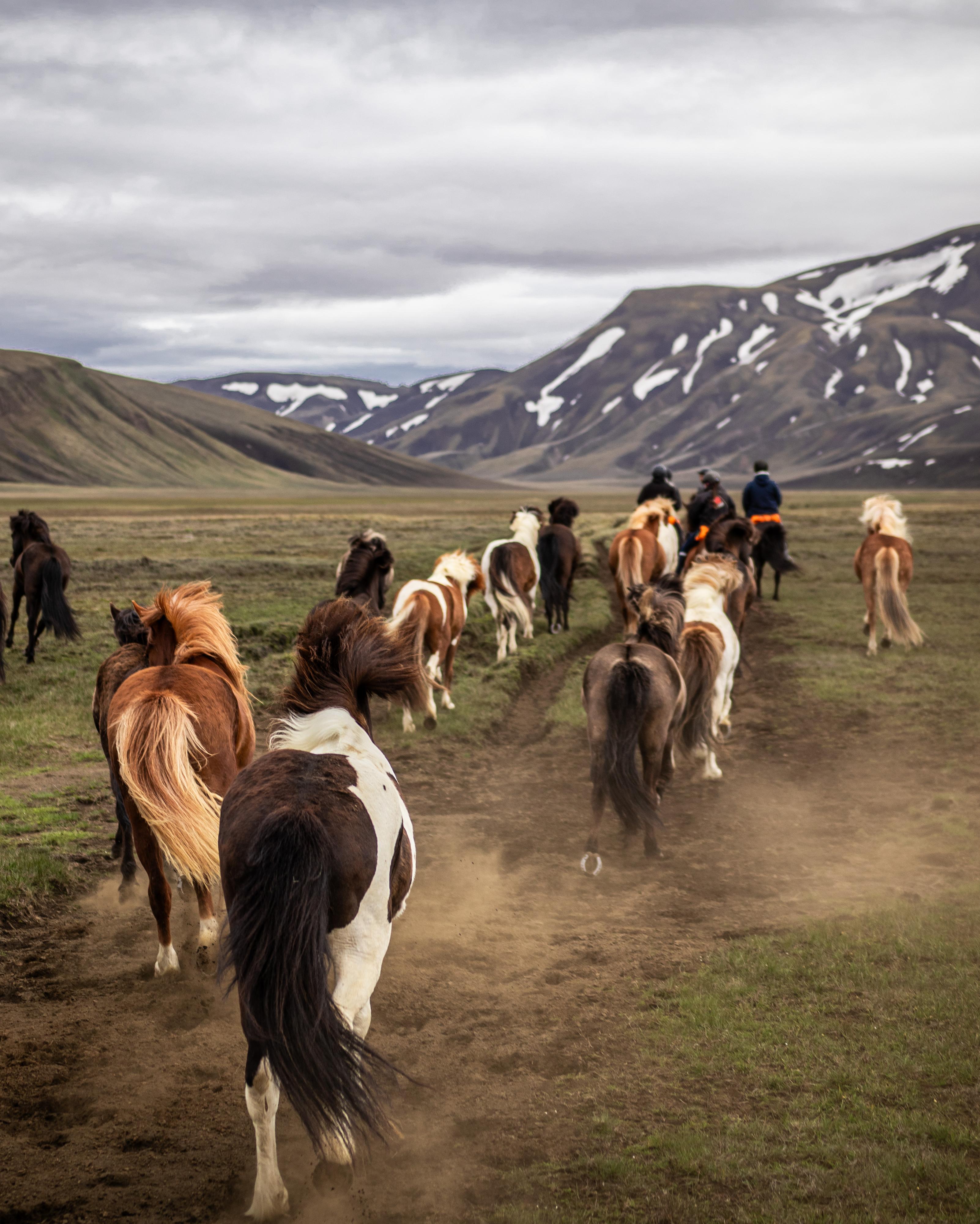 Långt bortom vägar och bebyggelse breder vidderna ut sig – glaciärer, floder, lavafält och uråldriga ridleder. Här rider vi med stora flockar från plats till plats, övernattar i enkla stugor och upplever Island så som det alltid har gjorts: från hästryggen, mitt i naturen. Våra höglandsturer är för dig som vill rida på riktigt, långt bort från vardagen – och komma hem med något som sitter kvar länge.