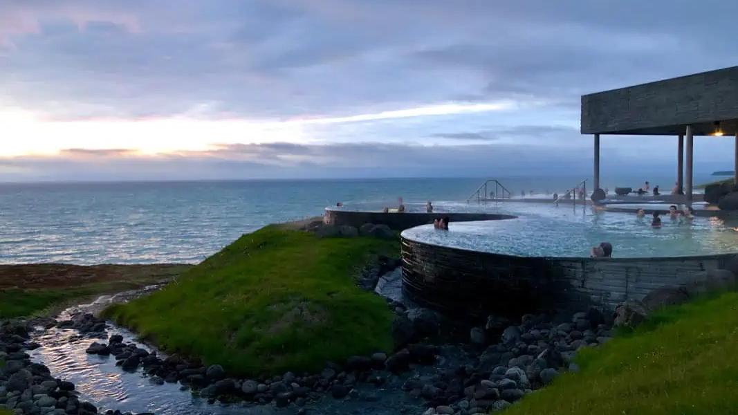 GeoSea i Húsavík är ett fantastiskt exempel. Här badar man i uppvärmt havsvatten med utsikt över Arktiska oceanen. Anläggningen är modern och elegant, men känslan är ändå rå och nordisk – hav, himmel och horisont i ett.