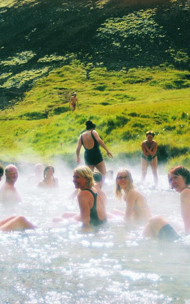 Under våra turer möter man ofta också små, mer avlägsna varma källor – ibland bara en naturlig bassäng i marken. Här badar man bokstavligen i landskapet, ofta helt ensam. Det är bad i sin mest ursprungliga form, speciellt i Landmannalaugar.