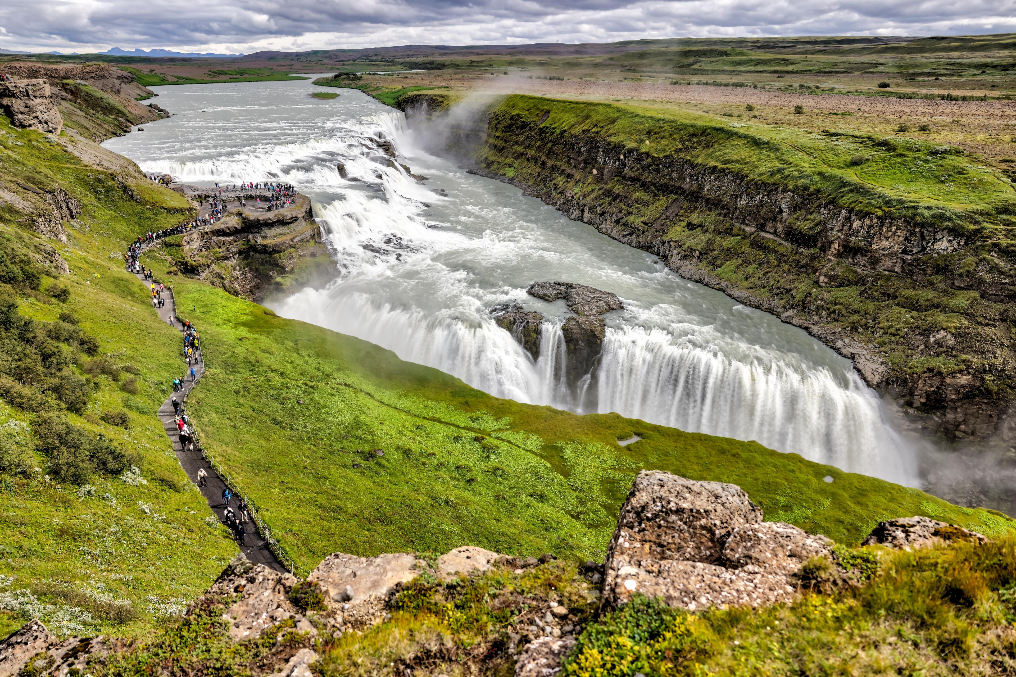 Det är inte ett ”vackert” vattenfall i klassisk mening. Det är brutalt. Ljudet är öronbedövande. Marken vibrerar. Man känner sig liten – och det är just det som gör upplevelsen så stark.