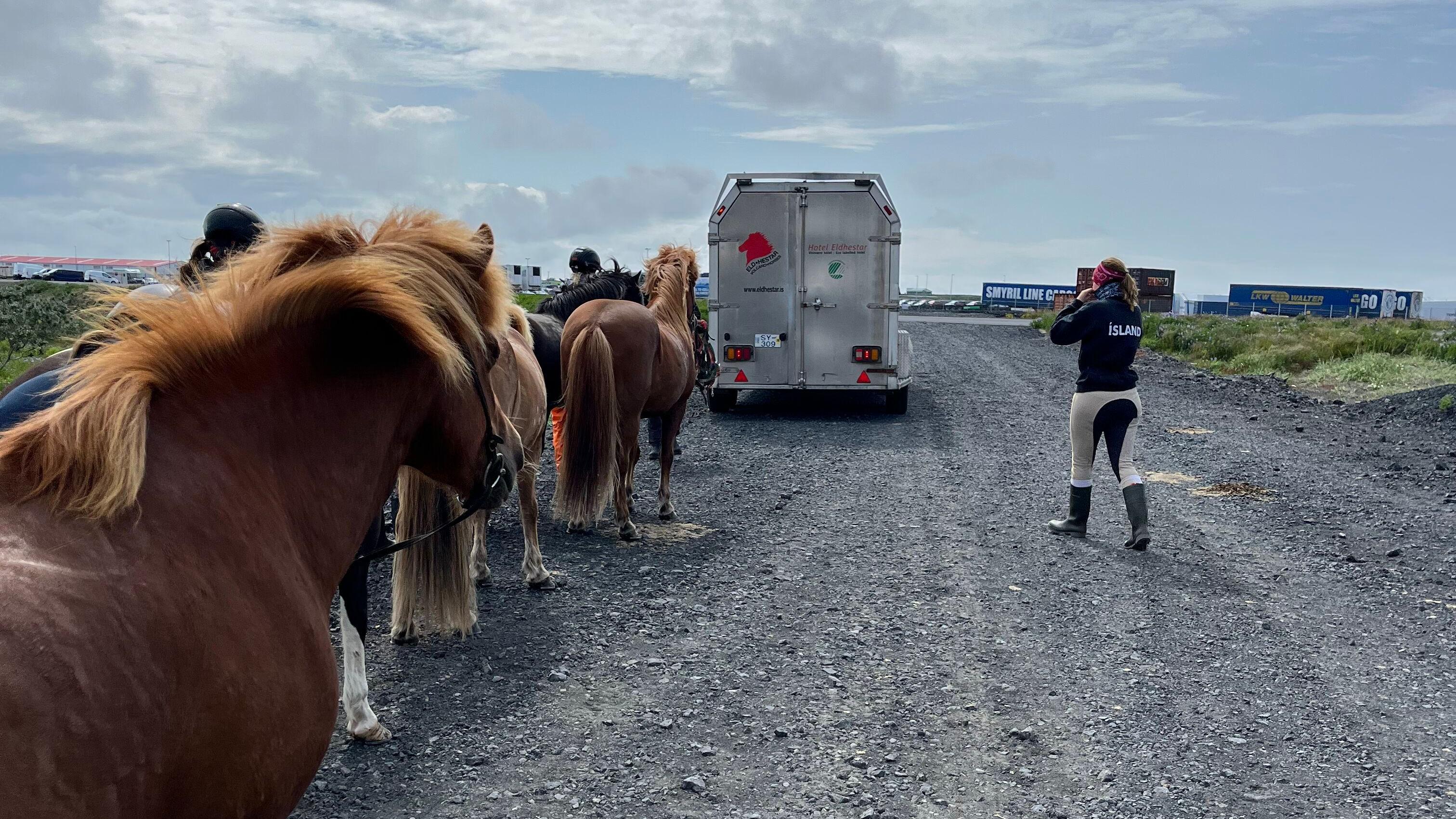 Vi blev upphämtade med bil och hästarna lastades för transport tillbaka till gården. Väl tillbaka väntade fika innan bussen tog oss åter till Reykjavík.