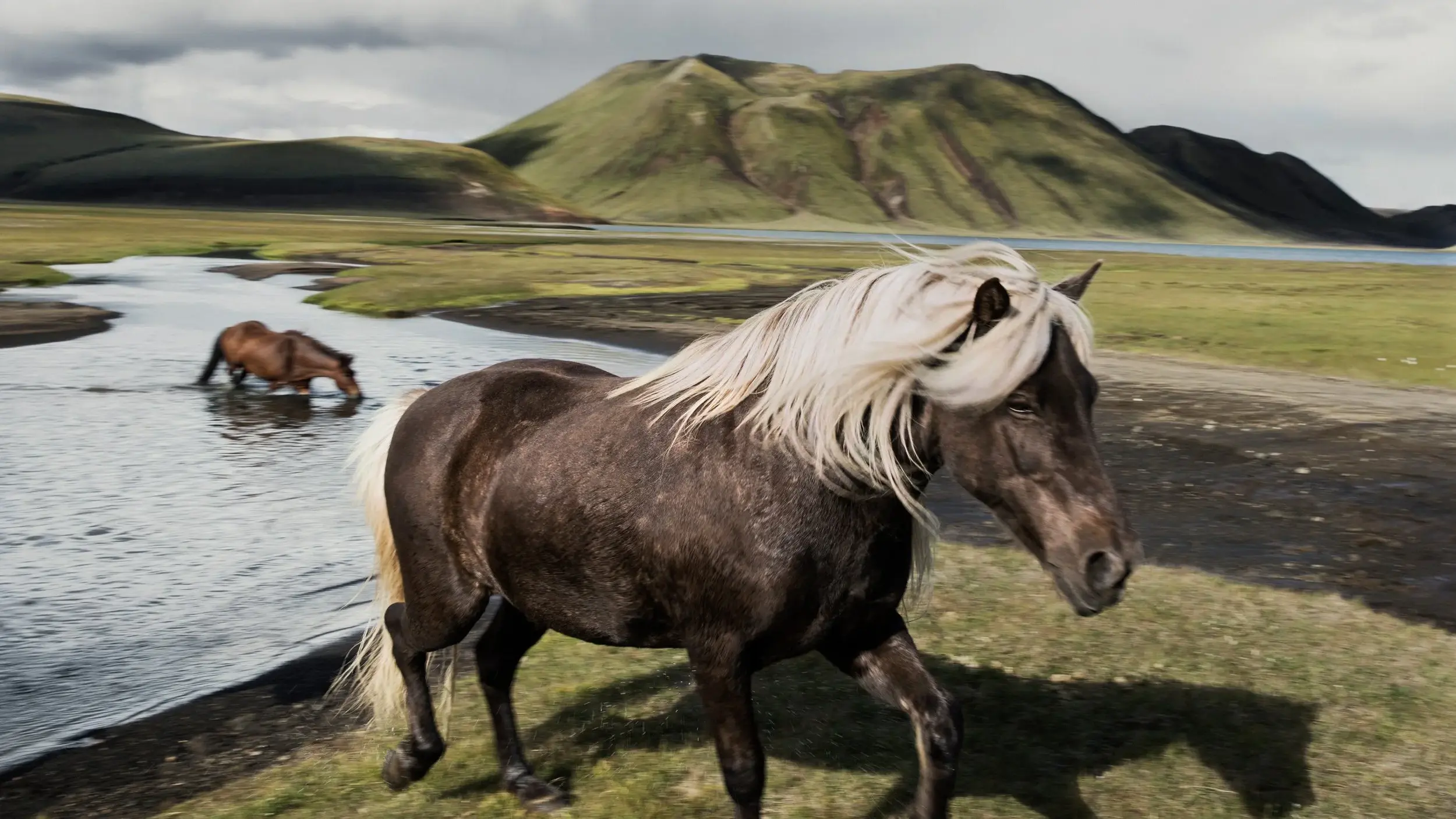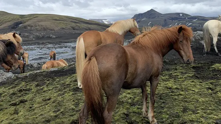 Vi rider från Gunnarsholt mot Rjúpnavellir, vidare längs floden till Landmannahellir där vi övernattar första natten. Nästa dag fortsätter vi till Landmannalaugar – ett sagolikt landskap av ångande heta källor och färgstarka berg i gult, grönt och rött. Här finns tid att bada, vandra en stund och bara njuta av stillheten.