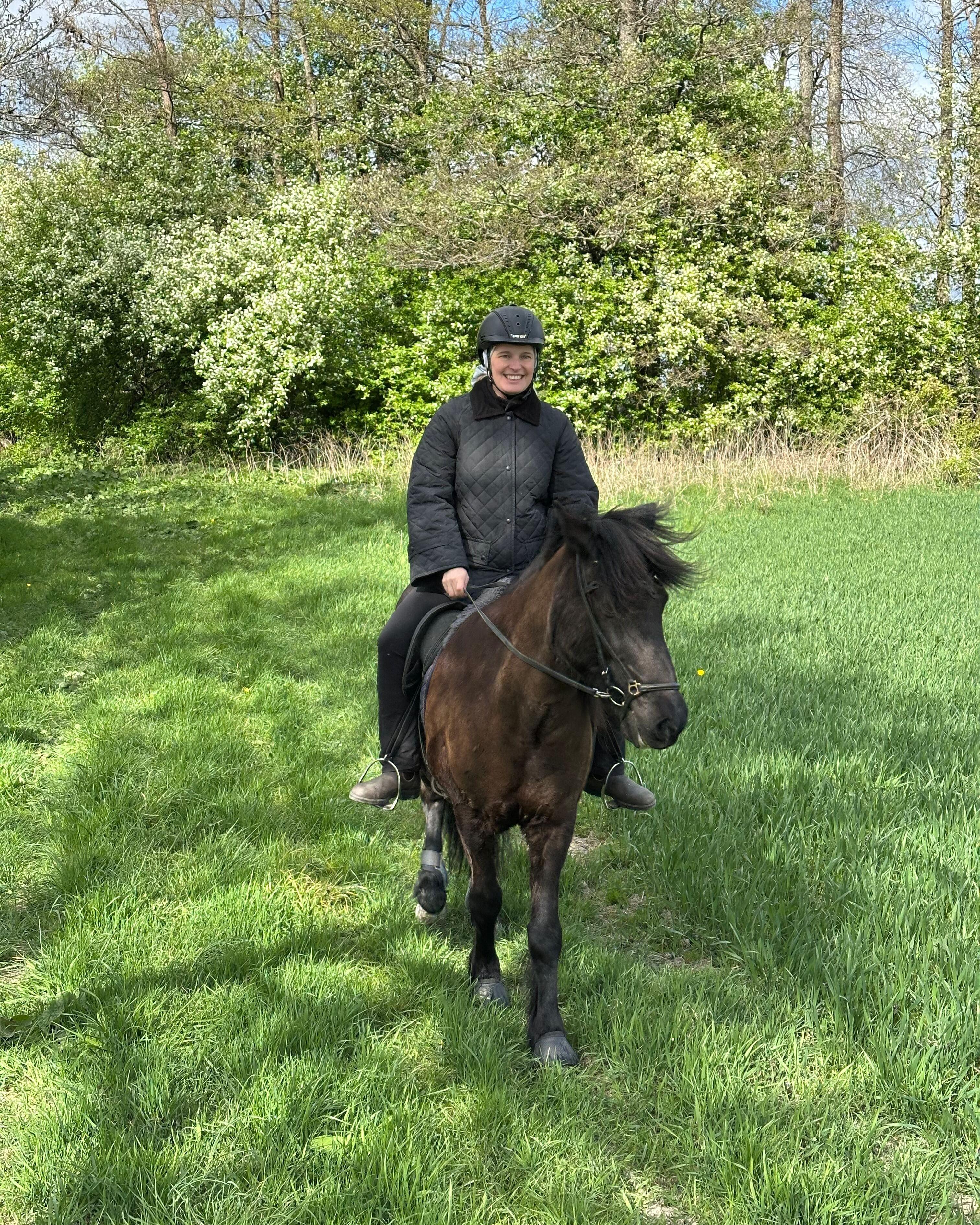 På ridbanan går vi igenom grunderna: skritt, tölt, svänga, stanna och känna efter. Känns allt bra tar vi en kort, tur ut i skogen, i det tempo som känns bra. Inget måste, inget prestige – bara ärlig ridning.