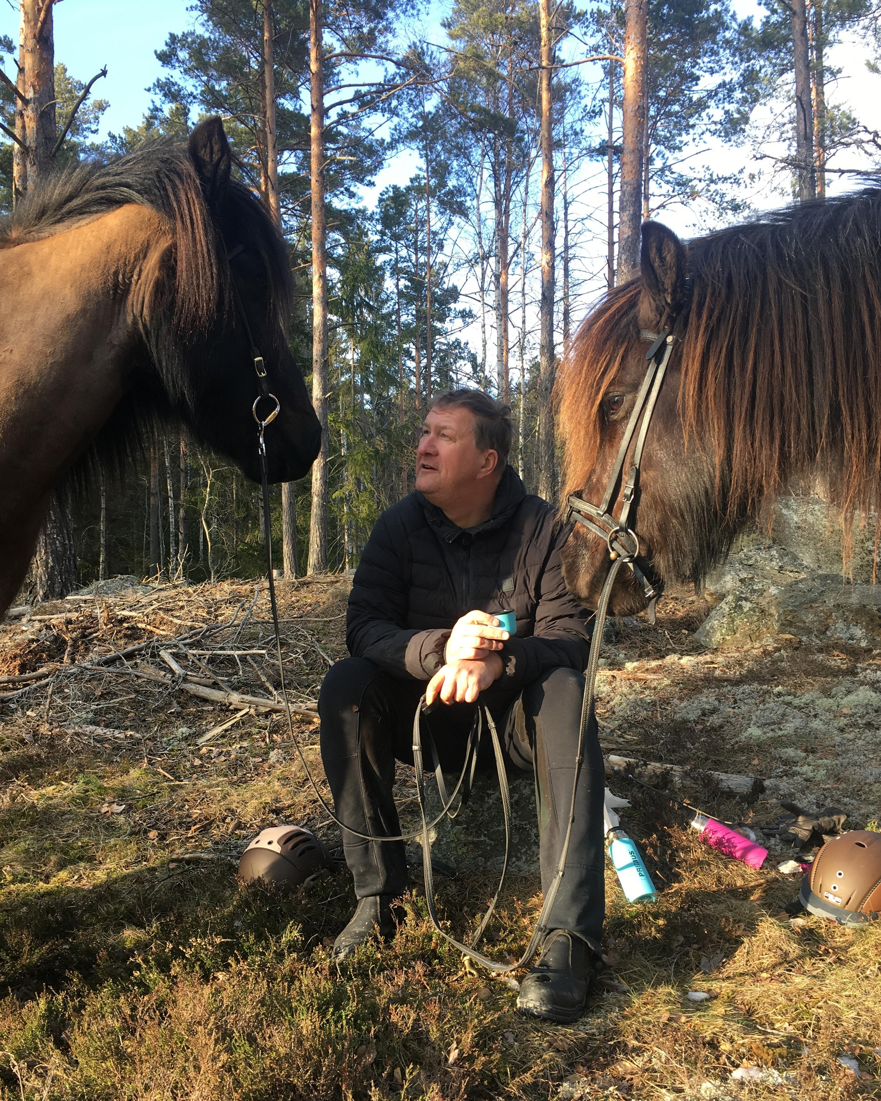 Strokkur och Ulf ute på fika i skogen.